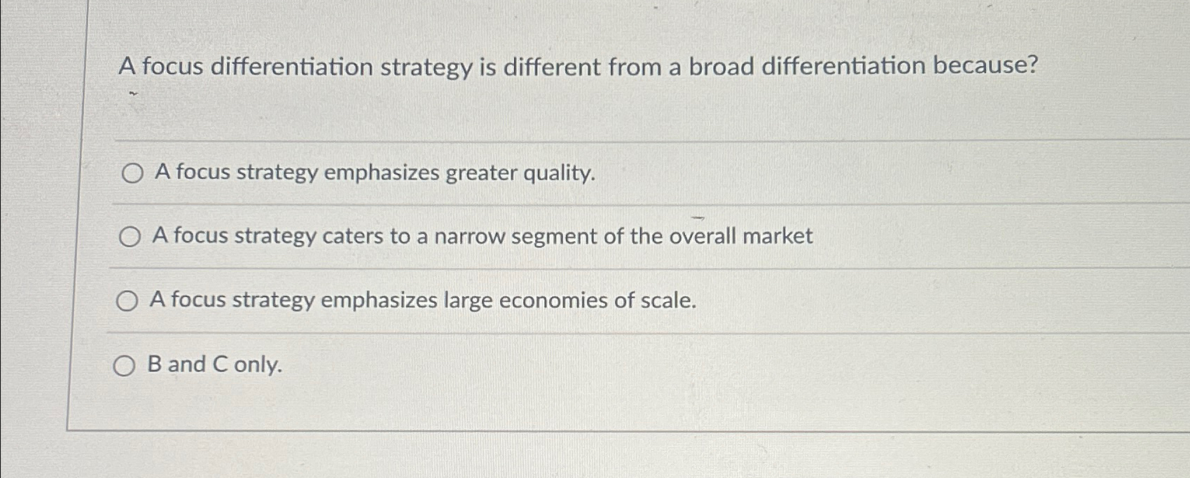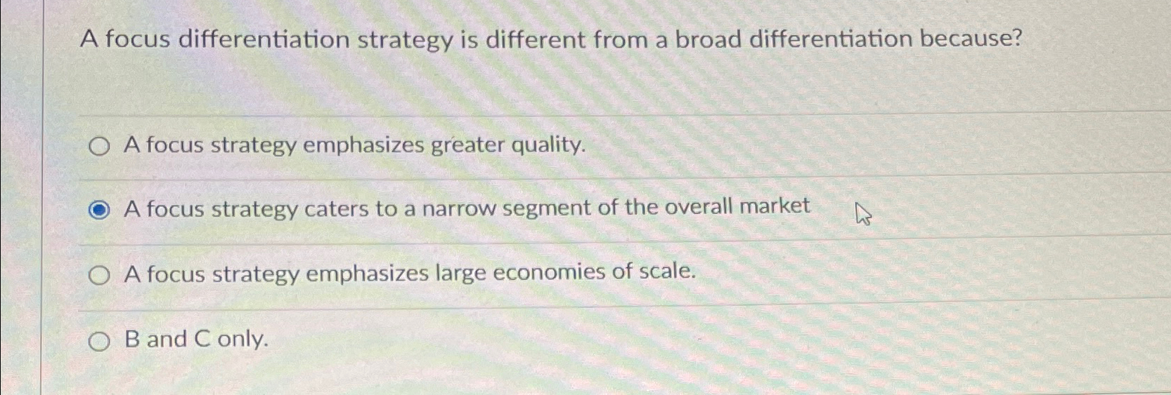 Solved A focus differentiation strategy is different from a