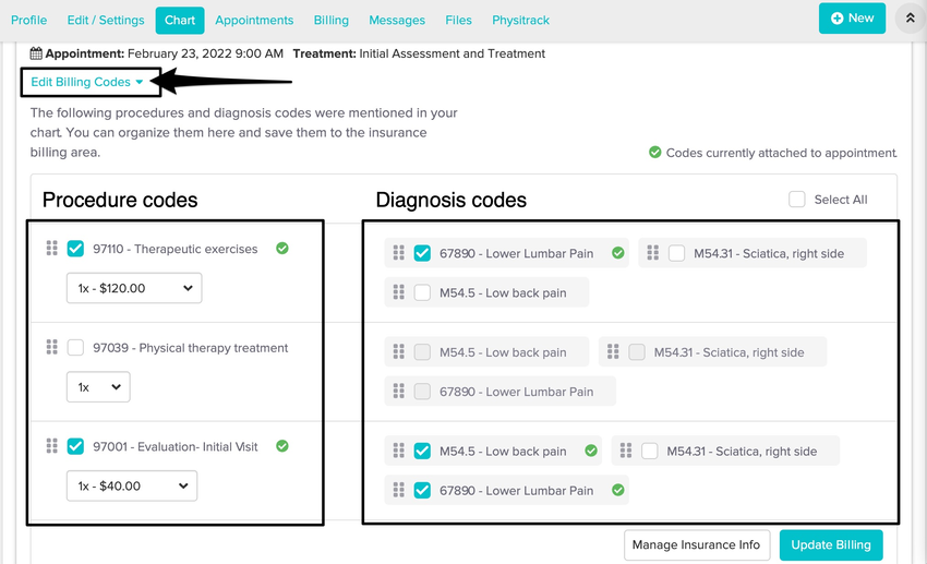Start Billing 2 CPT & Diagnosis codes Jane App