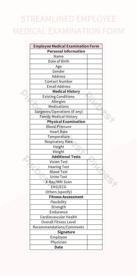 Free Health Examination Form Templates For Google Sheets And Microsoft