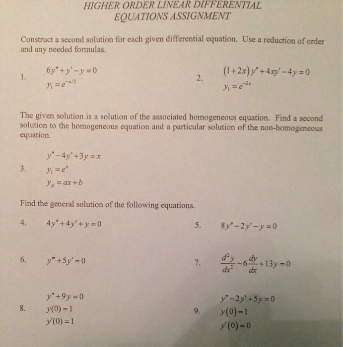 Solved HIGHER ORDER LINEAR DIFFERENTIAL EQUATIONS ASSIGNMENT