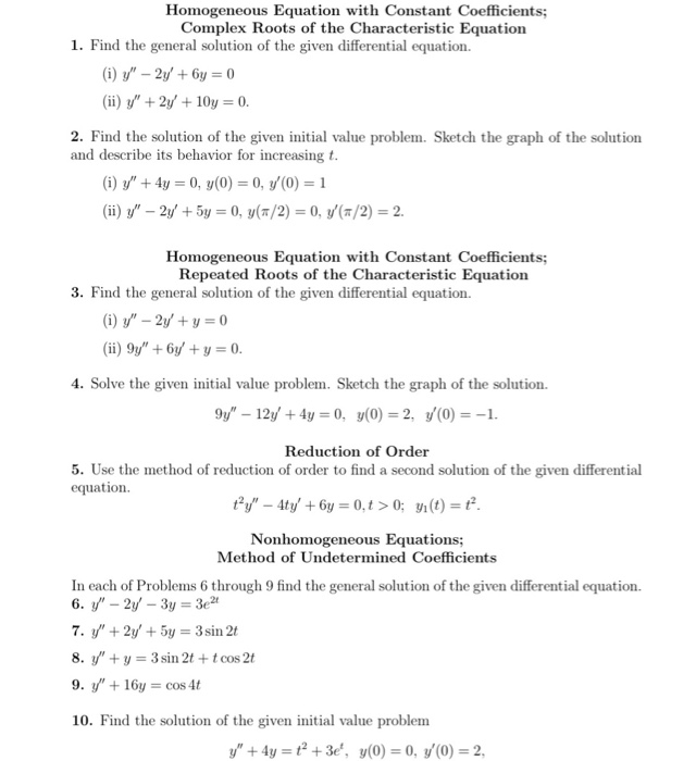 Higher order linear differential equations with constant coefficients part i. In this section we will be investigating homogeneous second order. Ay′ ′ + by′ + cy = 0 (3.2.1) to solve this, we recognize that a solution to this. We first consider the homogenous equation with constant coefficients: Find a fundamental set of solutions of the given diferential equation.
