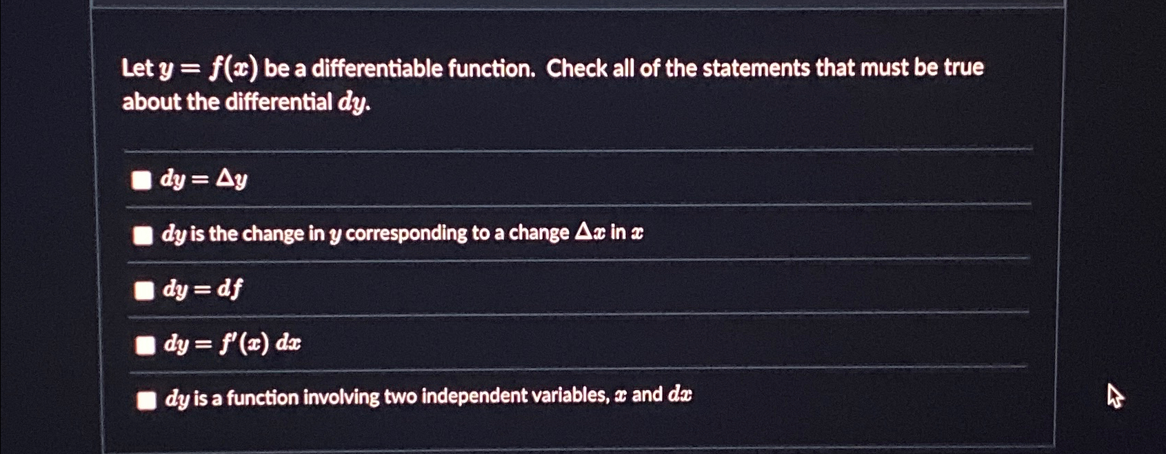 Solved Let y=f(x) be a differentiable function. Check all