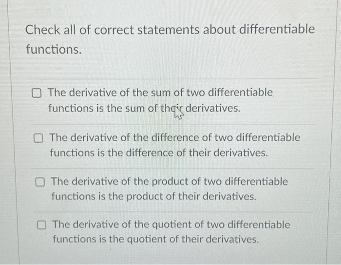 Solved Check all of correct statements about differentiable