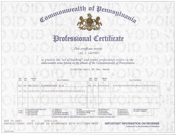 teaching certificate