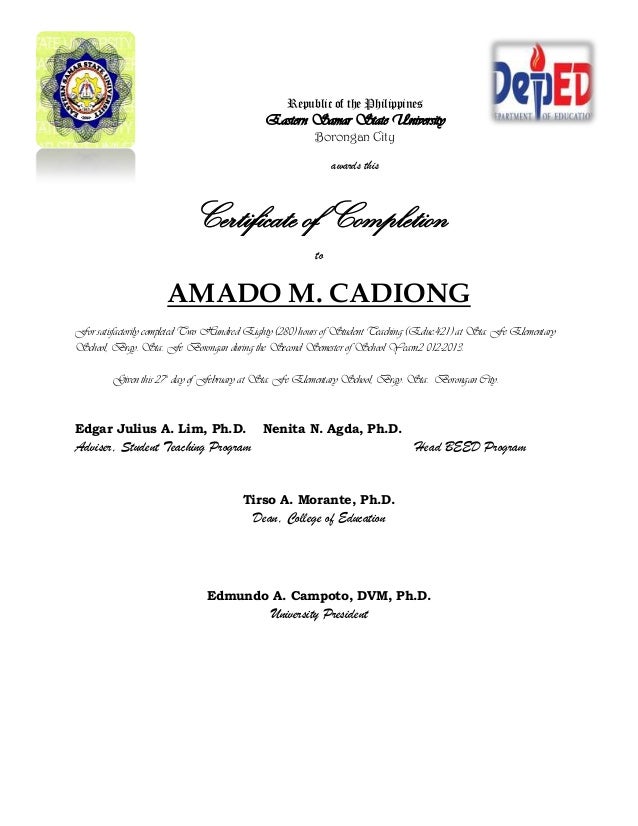 Practice teaching certificate