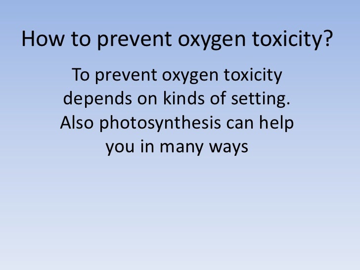 Oxygen can produce pulmonary toxicity at one atmosphere, but 24 hours of continuous oxygen. To prevent oxygen toxicity, make sure your oxygen is on the right setting. Oxygen toxicity can be prevented by lowering the amount of oxygen in supplemental. Oxygen toxicity is a serious concern in the healthcare setting, particularly for patients. Oxygen toxicity can be prevented by lowering.