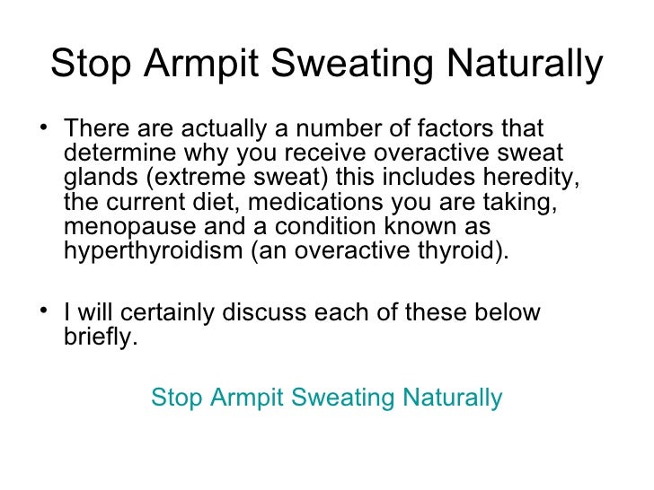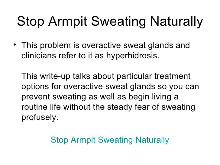Here is how to stop sweating underarms naturally. Reducing underarm sweating can be effective with a number of natural remedies, without the use.