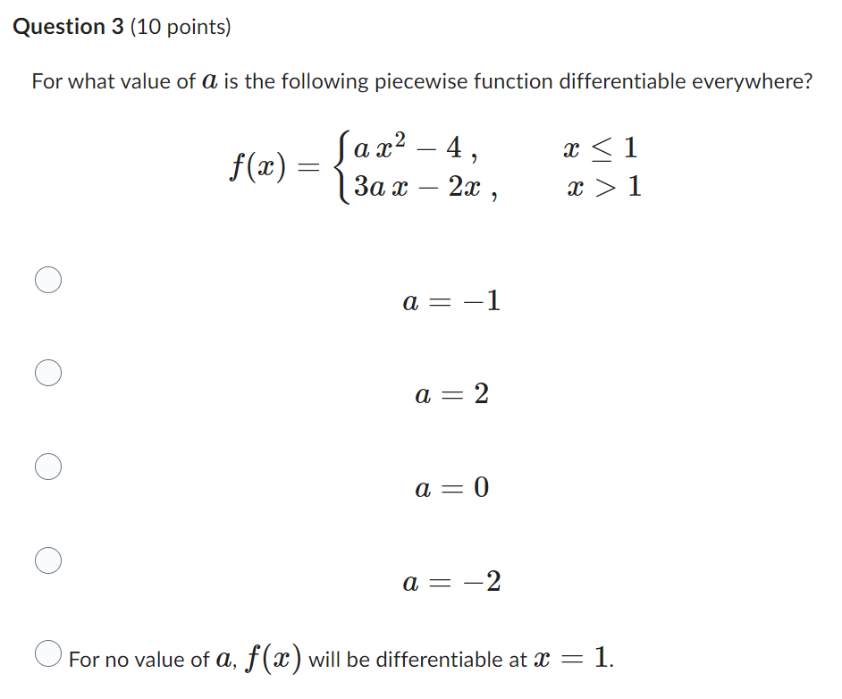 Generally, if you graph a piecewise function and at any point it doesn't look smooth (there's a. $f(x)$ is differentiable at $x=1$ for the unique values of $a$ and $b$. (differentiable and gradient) let f: S ↦ r where s = s ∘ ⊆ r, x ∈ s.