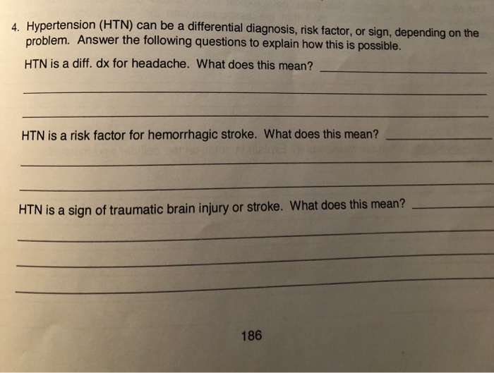 Solved 4. Hypertension (HTN) can be a differential