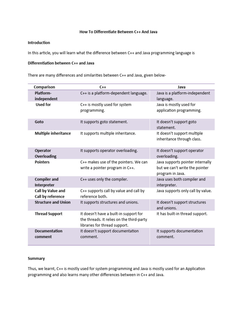 1.4 How To Differentiate Between C++ and Java PDF C++ Java