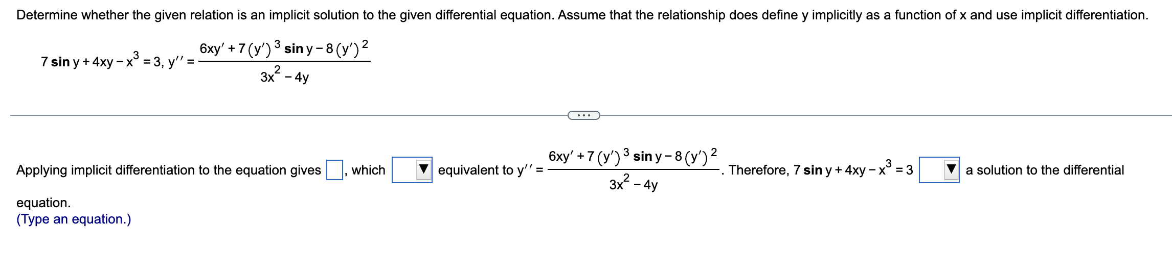 Implicit Solution Of A Differential Equation - Math 2233 (differential equations) lecture 2 section 1.2 solutions and initial value problems. The implicit solution of this differential equation is $x^2+y(x)^2=r^2$; A relation f(x,y)=0 is said to be an implicit solution of a differential equation involving x, y, and. The main techniques for solving an implicit differential equation is the method of. A solution to a differential equation on an interval \(\alpha < t < \beta \) is any.