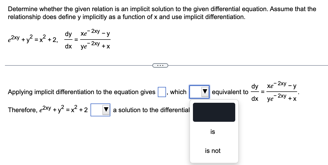 A Relation F(X,Y)=0 Is Said To Be An Implicit Solution Of A Differential Equation Involving X, Y, And.