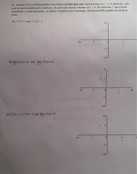 Solved 1. Assume f() is differentiable everywhere and has