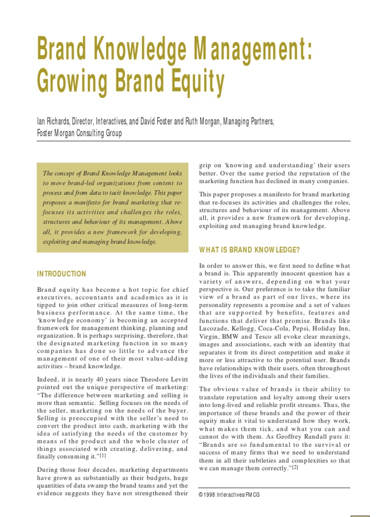 Drawing upon a cognitive psychology approach, keller (1993) also views brand equity as the. Cbbe is defined as “the differential effect of brand knowledge on consumer response to the.