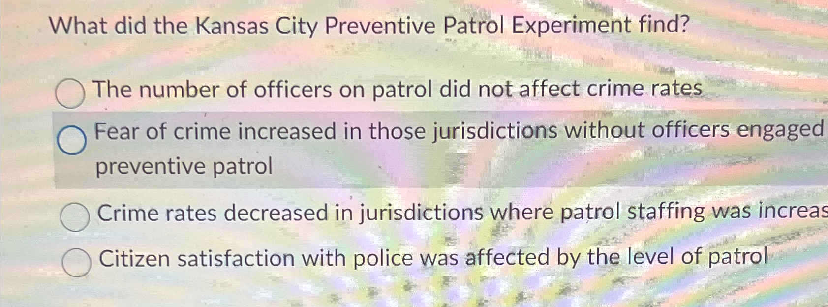 SOLUTION Kansas City Preventive Patrol Experiment Studypool