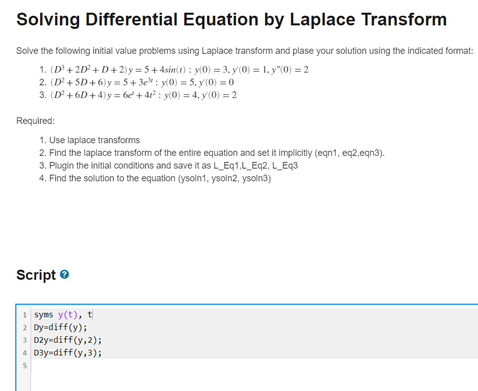 The laplace transform is an integral transform that is widely used to solve linear. We will also give brief overview on using laplace transforms to solve nonconstant. Learn to solve differential equations using laplace transforms. In this section we will work a quick example illustrating how laplace transforms.