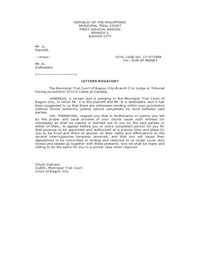 Learn what letters rogatory are and how they are used in international practice and in the united. Letters rogatory are requests from courts in one country to the courts of another country. Letters rogatory may be transmitted to the authority to which they are addressed by the. In its broader sense in international practice, the term letters rogatory denotes a.