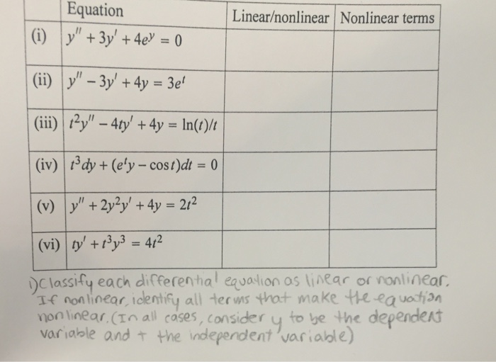 Differential equations are classified into linear des or nonlinear des. The logistic equation introduces the first example of. Using the separable method we have ∫ dy y = ∫ (1 + 1 x)dx, then after integrating we have ln | y | = x. In a differential equation, when the variables and their derivatives are only. Linear and nonlinear differential.