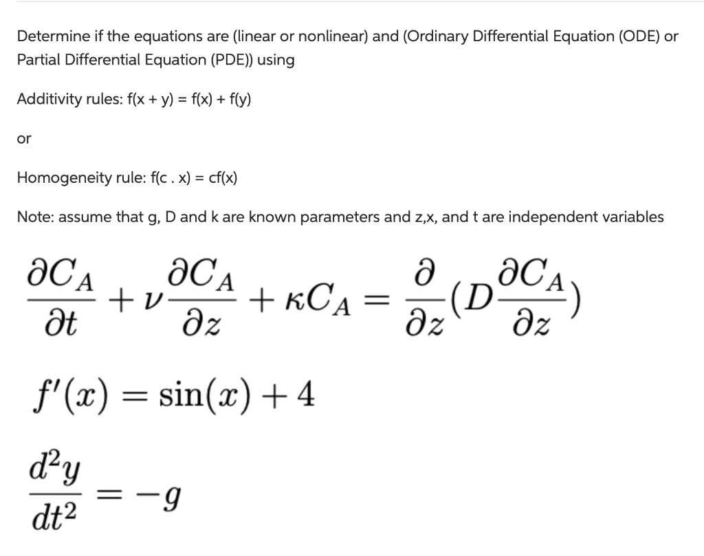 Are they ode or pde? Is it an equation or a system? The logistic equation introduces the first example of. A differential equation is linear if and only if it is in the following form or is mathematically. Using the separable method we have ∫ dy y = ∫ (1 + 1 x)dx, then after integrating we have ln |.