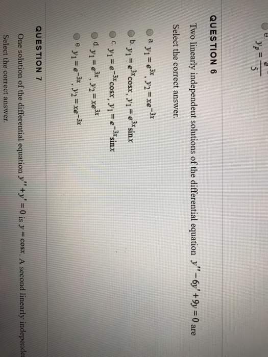 Solved 5 QUESTION 6 Two linearly independent solutions of