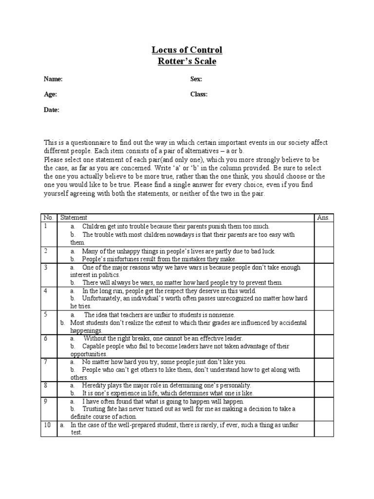 Understanding Locus of Control Scoring Rotter's InternalExternal