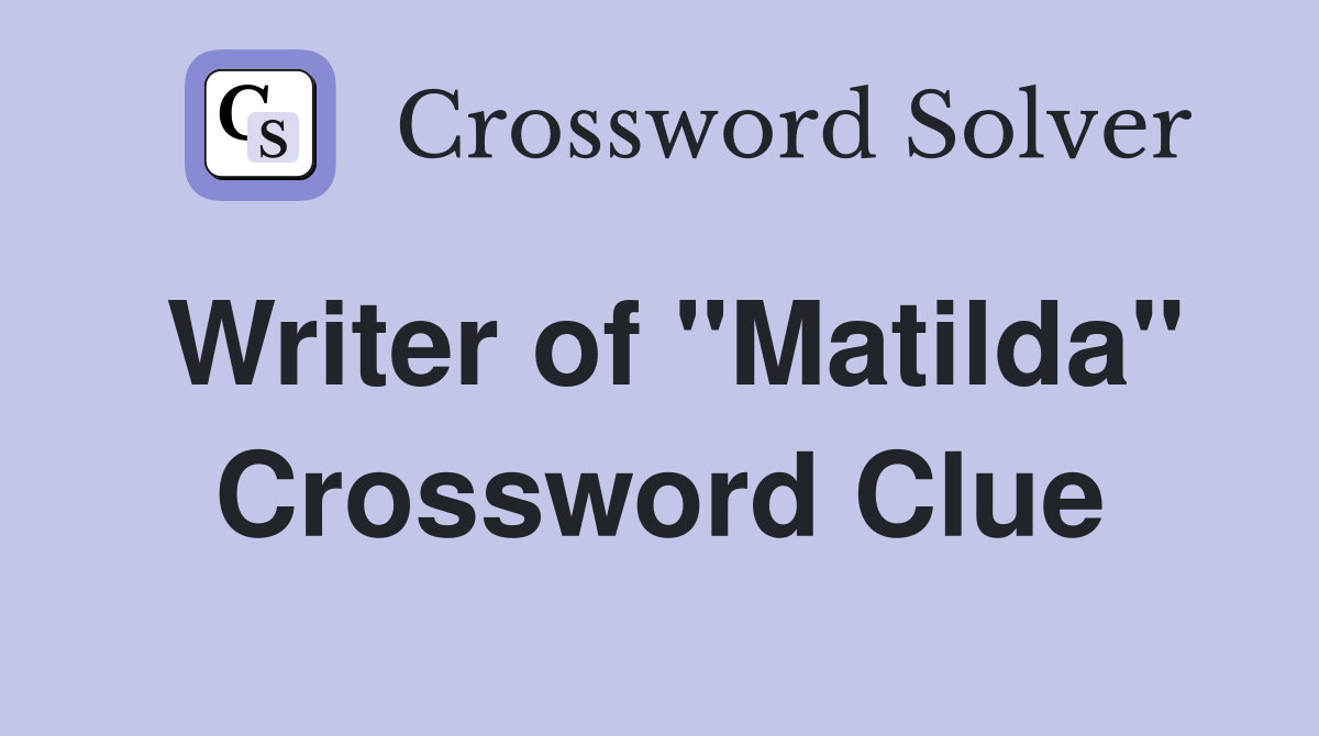 The crossword solver found 30 answers to matilda author (5,4), 9 letters crossword clue. Matilda author is a crossword puzzle clue that we have spotted 11 times. Today's crossword puzzle clue is a quick one: The crossword solver found 30 answers to matilda author, 4 letters crossword clue. We found the following answers for:
