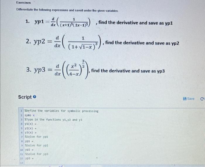 [Solved] USING MATLAB Differentiate the following expressio