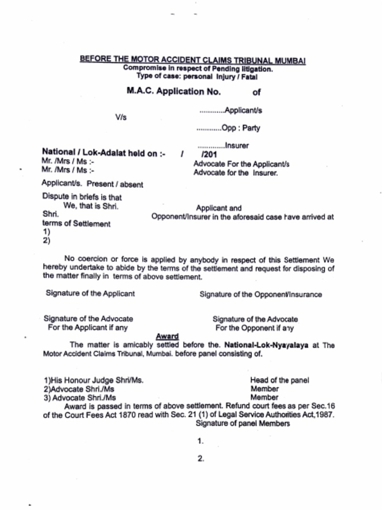 Compromise Form For Lok Adalat PDF
