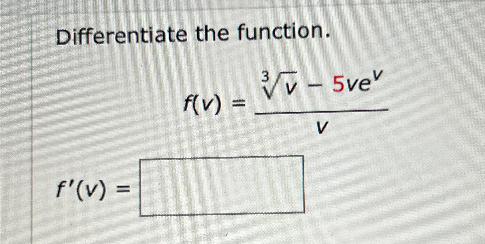 Solved Differentiate the function.f(v)=v35vevvf'(v)=