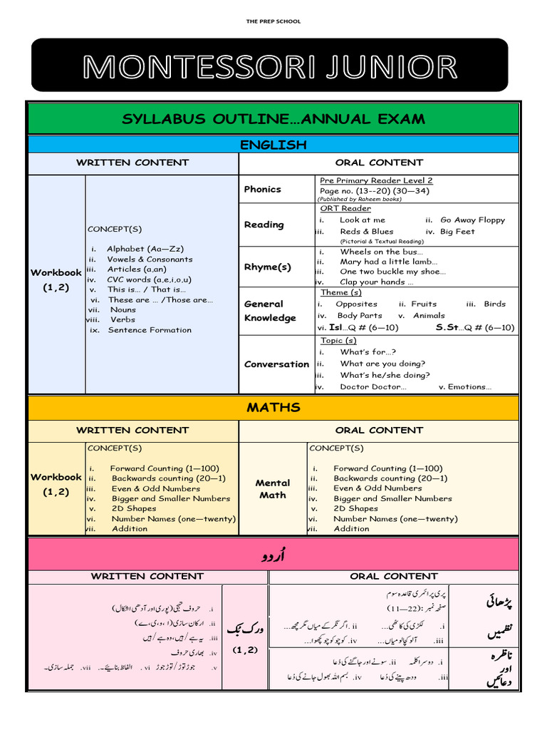 Syllabus of Montessori Junior Annual Exam 202324 Download Free PDF