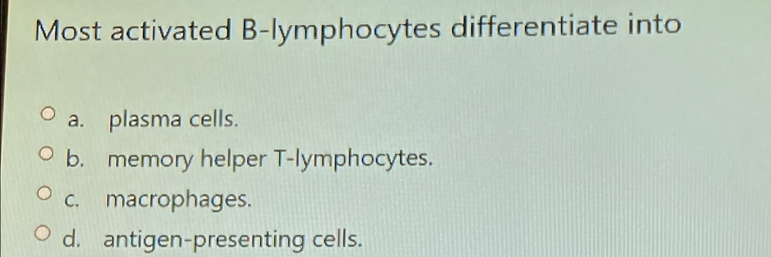 Solved Most activated Blymphocytes differentiate into Multiple Choice