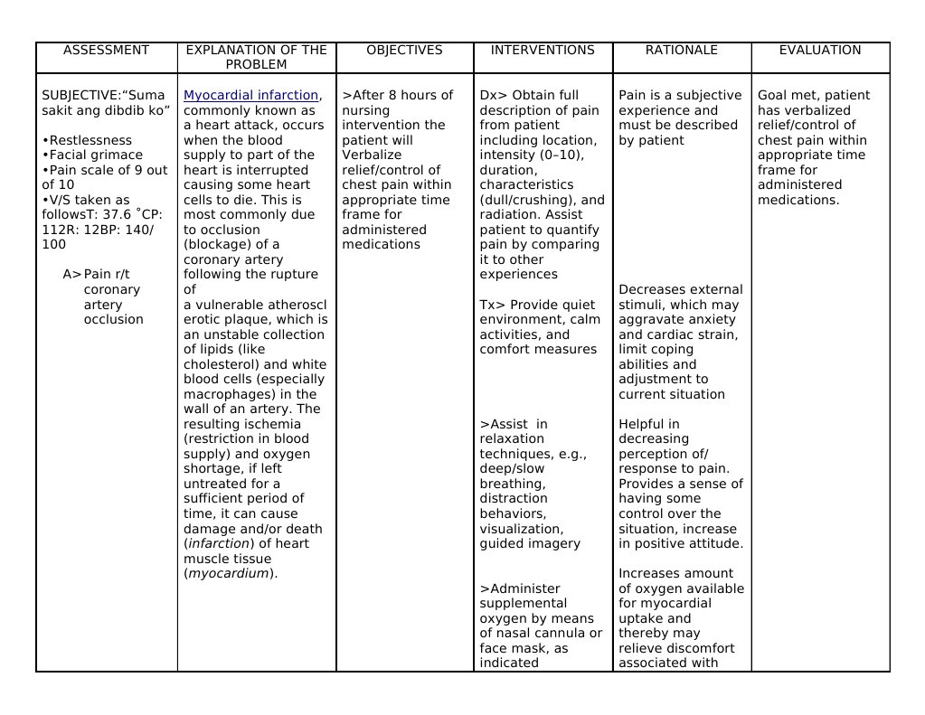 Myocardial Infarction Nursing Care Plans Diagnosis and Interventions