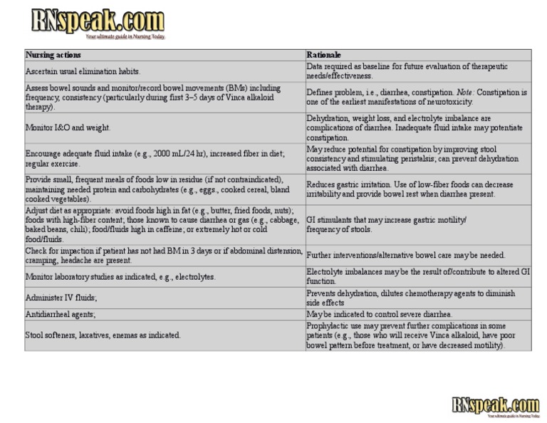 Risk for ConstipationCancer Nursing Care Plan Constipation Diarrhea