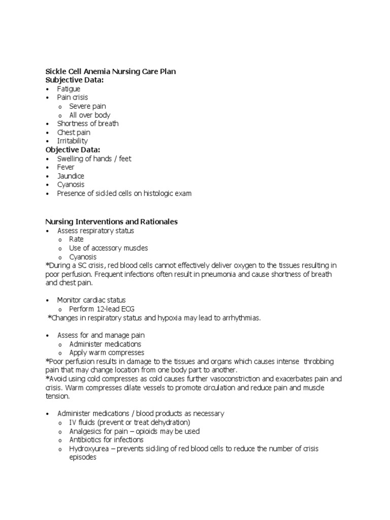 Complete Care Plan For Sickle Cell Anemia (Nursing Care, 59 OFF