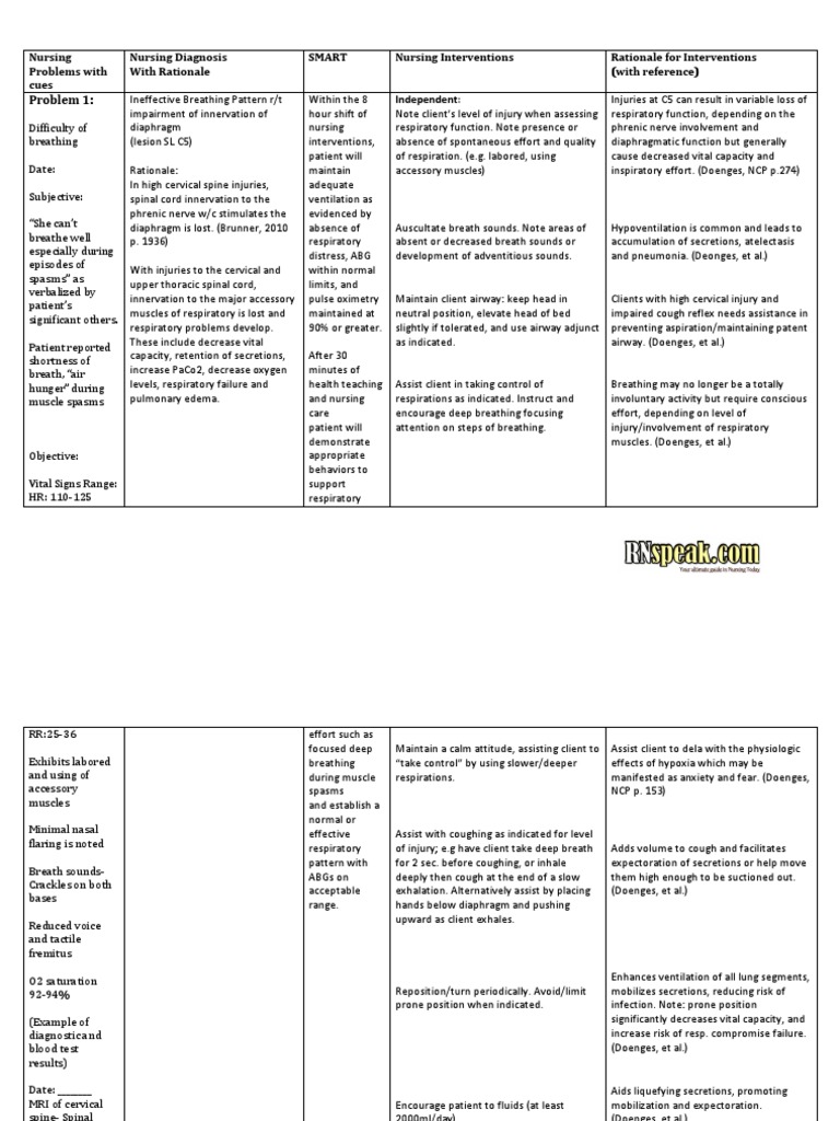 3 Spinal Cord Injury Nursing Care Plan Breathing Spinal Cord Injury