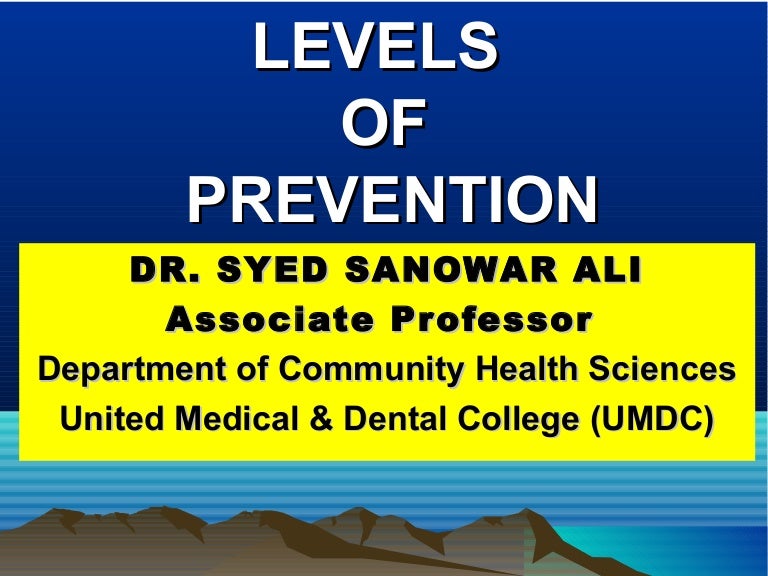 The five levels of prevention in public health are primordial, primary, secondary,. The three levels of prevention are primary, secondary, and tertiary. Primary prevention is all about stopping diseases before they start.