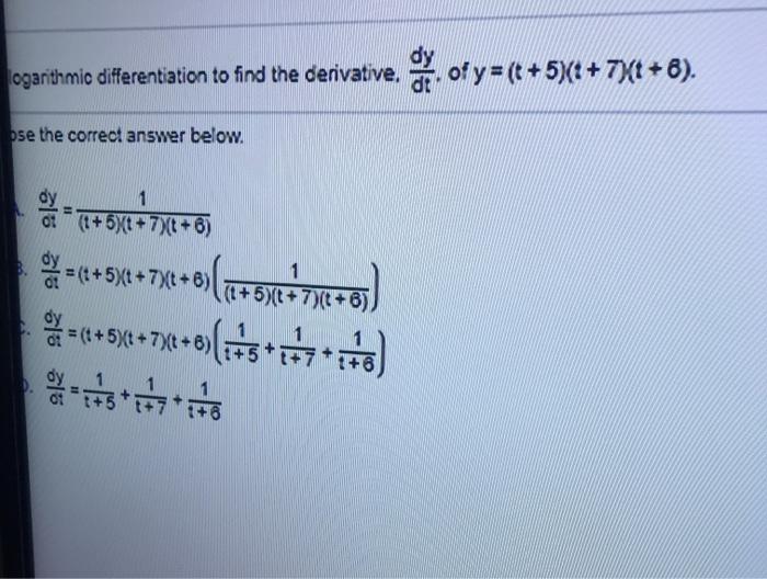Solved ogarithmic Differentiation Use logarithmic