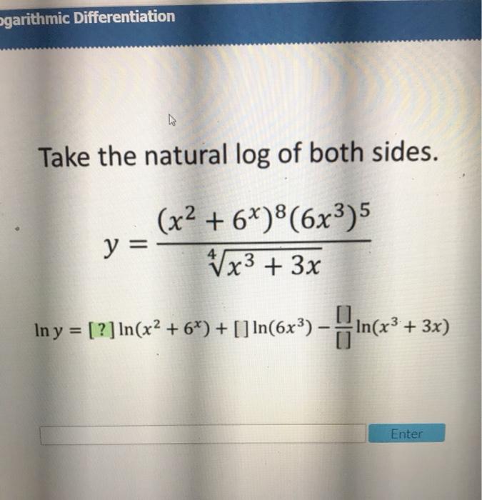Solved ogarithmic Differentiation Take the natural log of