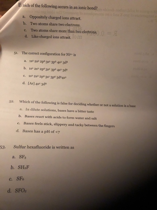 Solved hich of the following occurs in an ionic bond? a.