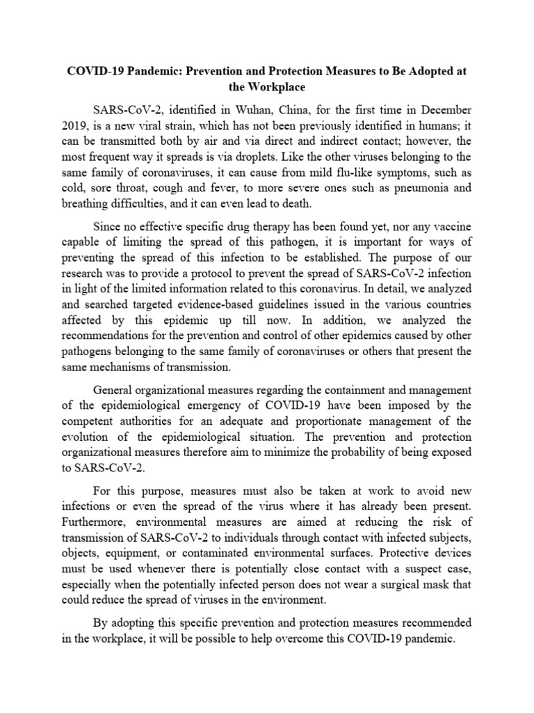 COVID19 Pandemic Prevention and Protection Measures To Be Adopted at