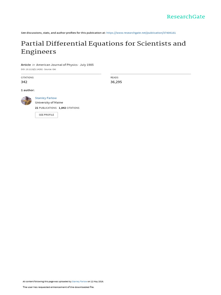 (PDF) Partial Differential Equations for Scientists and Engineers