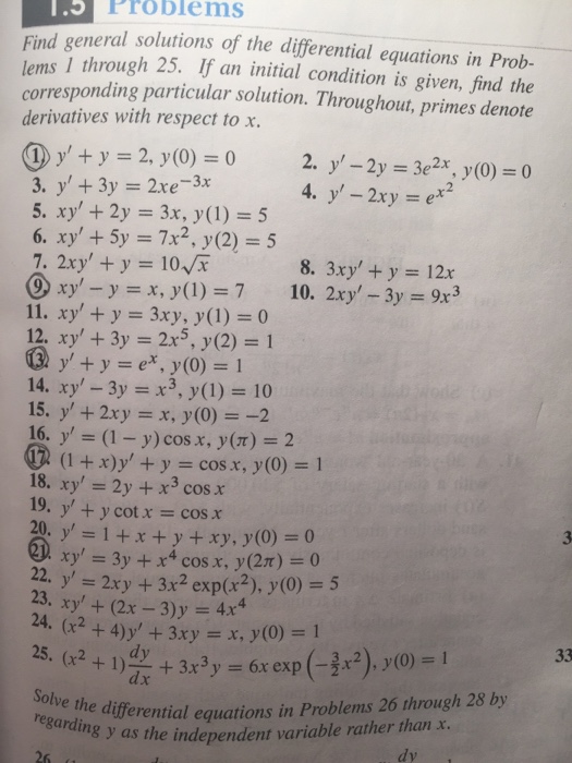 Solved Find general solutions of the differential equations