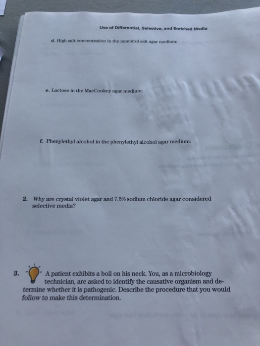 Solved Use of Differential, Selective, and Enriched Media
