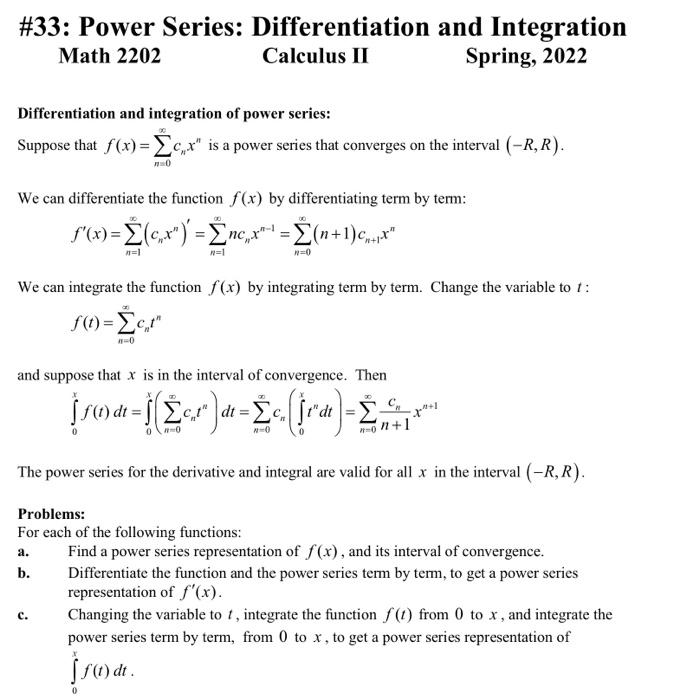 Solved 33 Power Series Differentiation and Integration