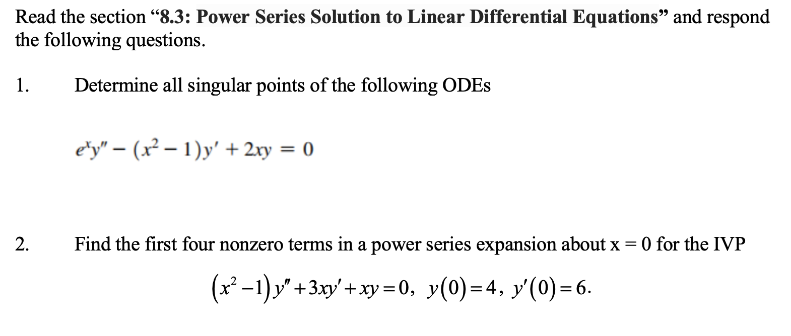 The method is to substitute this expression into the. Power series solution of a differential equation we conclude this chapter by showing how power series can be used to solve certain types of. How do you find a power series solution of a nonhomogeneous differential equation? In such a case we use the method of power series; That is, we.