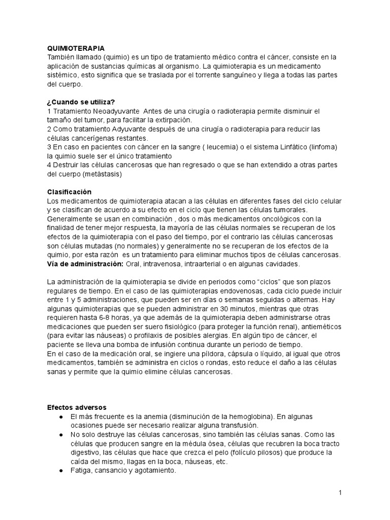 QUIMIOTERAPIA PDF Quimioterapia Cáncer