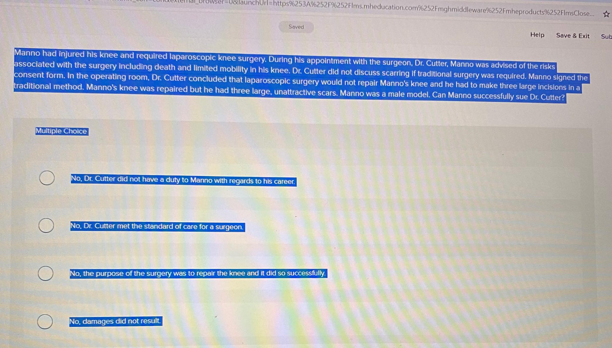 Solved Manno had injured his knee and required laparoscopic