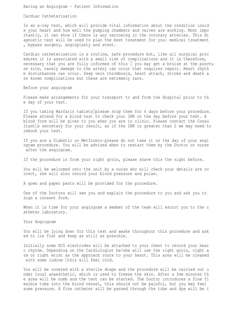 Angiogram Recovery Time PDF Angiography Cardiology