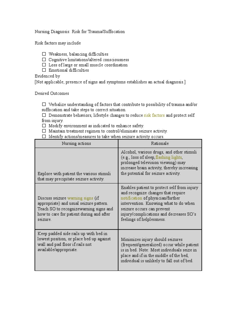 Nursing Diagnosis for Seizure Diseases And Disorders Medical