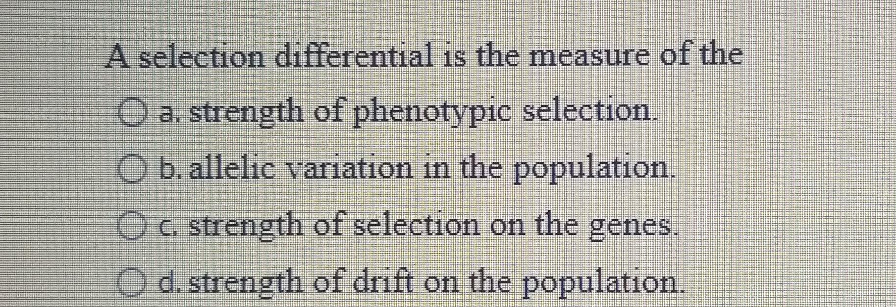 Solved A selection differential is the measure of the O a.